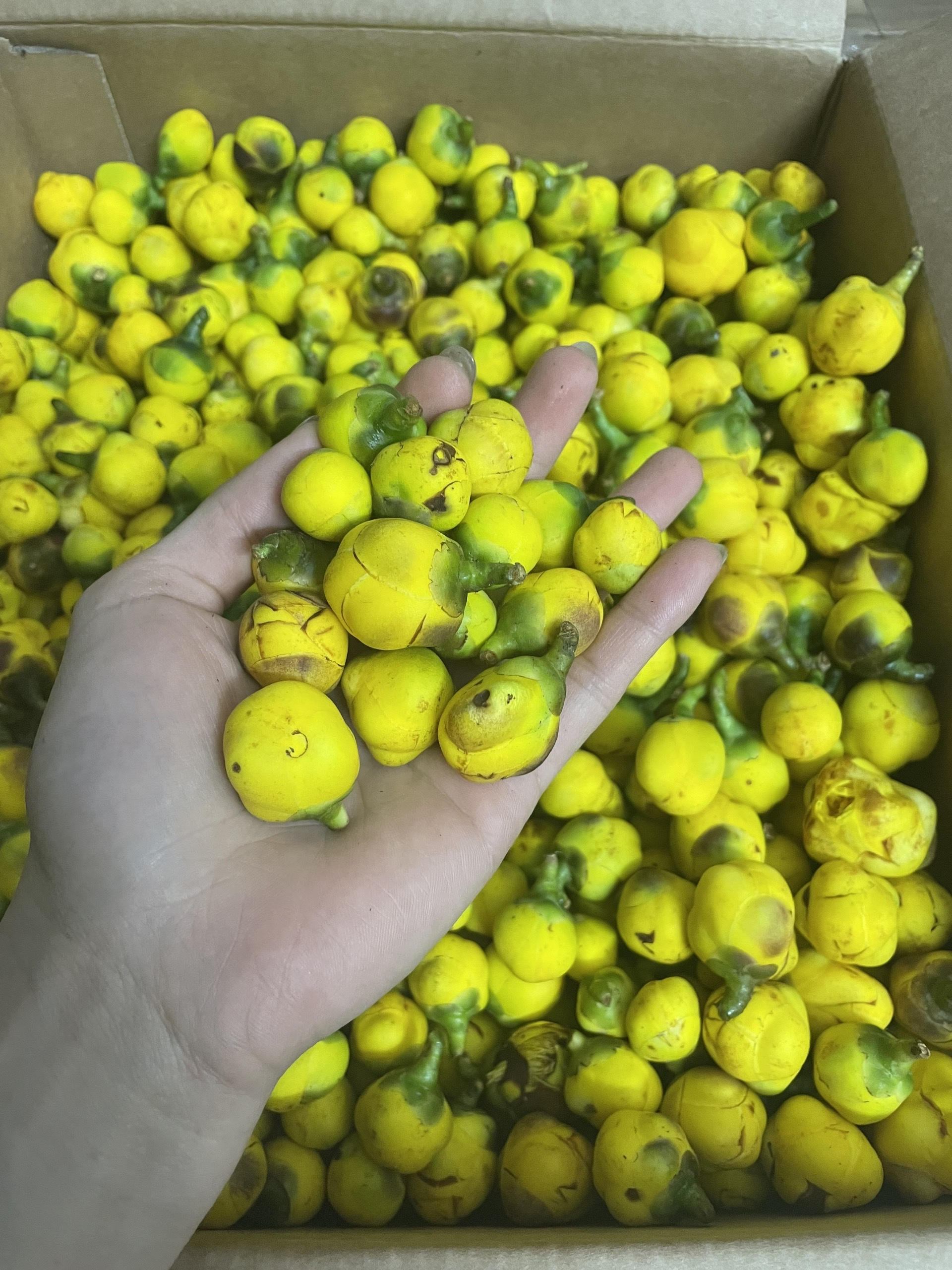 | 05-01-2026 12:01:00 | Thu hoạch | Tiến hành thu hoạch hoa Trà Hoa Vàng đợt 1. Sử dụng phương pháp thu hoạch thủ công bằng tay. Thời tiết 5/1/2026 trời nhiều mây, trời rét, nhiệt độ 15 - 19 độ, độ ẩm không khí ở mức trung bình. Sau khi thu hoạch, hoa được đựng trong thùng carton và vận chuyển bằng xe chuyên dụng tới địa điểm sấy. Tổng khối lượng hoa tươi thu được là 7.5Kg | Hoàn thành | |