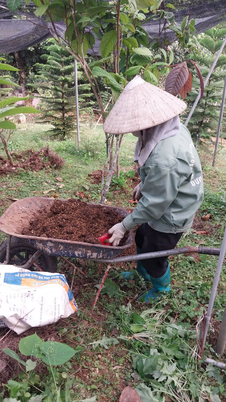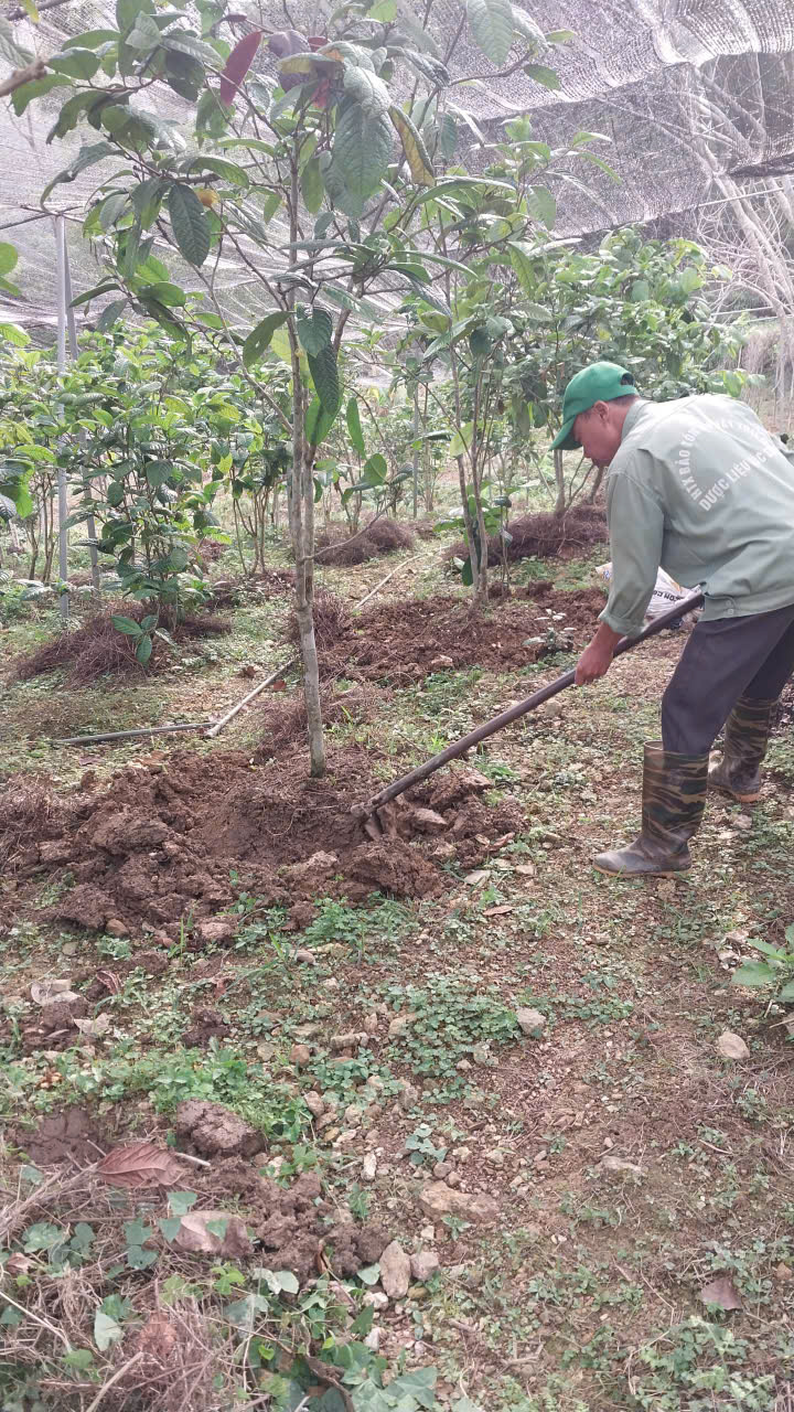 | 10-02-2026 12:02:00 | Bón Thúc | Tiến hành bón phân cho cây Trà Hoa Vàng. Loại phân được sử dụng là phân chuồng ủ hoai mục. Lượng dùng: Mỗi gốc 1,5 - 2 kg phân, tùy độ lớn của cây. Cách bón: Đào rãnh hình vành quanh gốc cây theo đường kính tán lá (cách gốc 20cm). Bón phân xong lấp đất lại. Tổng khối lượng: 2 tấn | Hoàn thành |