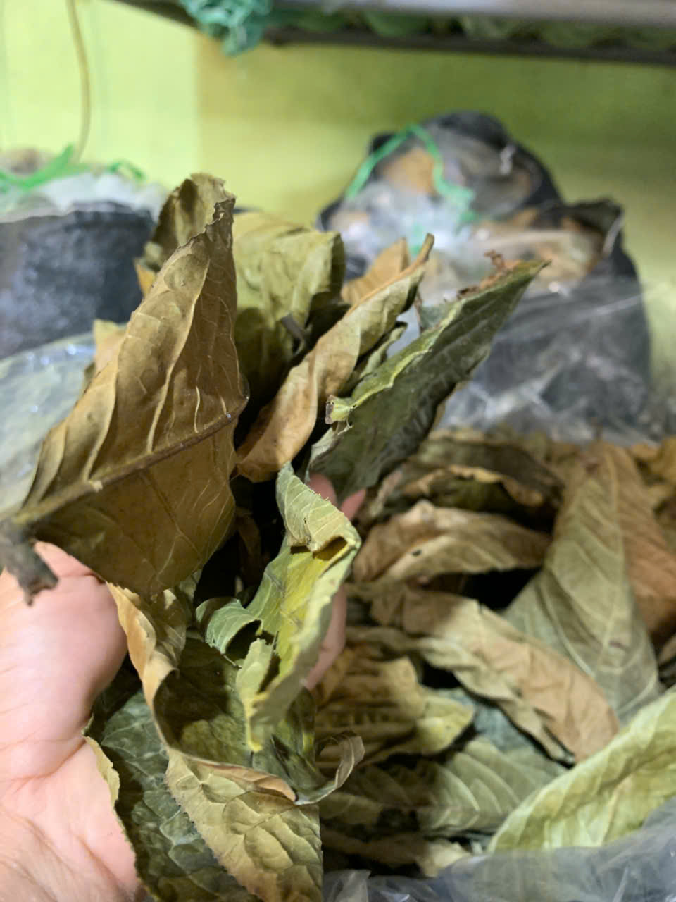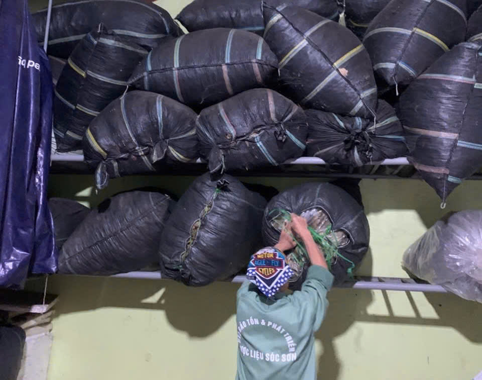 | 18-09-2025 12:09:00 | Nhà kho bảo quản | Nhập kho tổng khối lượng thu hoạch lá Trà hoa vàng sau các đợt thu hoạch là: 19 (Kg). Lá trà được đóng trong bao nilon trong suốt và đựng trong bao tải dứa rồi xếp lên giá riêng biệt trong kho chứa dược liệu. | Hoàn thành | |